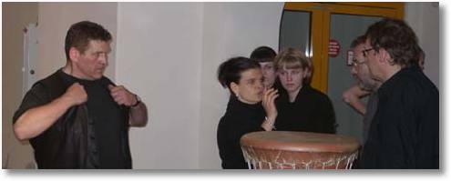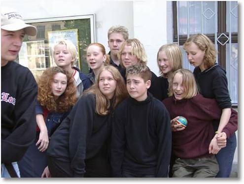 Das zeitweilige Künstlerdasein hat allerhand angerichtet in „meiner“ 8b. Viel Positives, das werden Sie den zahlreichen Bilddokumenten, dem Video und den beiliegenden Schülermeinungen am besten entnehmen können. Eine schleichende Gefahr möchte ich dennoch nicht unterschlagen -:). Gerade dadurch, dass uns dieses Projekt so fesselte, war die Rückkehr in den Schulalltag ziemlich schwer, auch für mich. Die Klasse war stolz auf die plötzliche Medienpräsenz (selbst im Programm des Lokalsenders konnte man sich bewundern!) und sonnte sich regelrecht in all dem Lob, was ihr entgegenschallte. Hier und da traten kleine Starallüren auf, so dass einige wieder auf den Teppich geholt werden mussten „¦ Der Klassenzusammenhalt, das Teamgefühl waren kaum noch zu toppen- was jedoch die Bereitschaft ,die Leistung anderer fair zu bewerten und dem „banalen“ Stundengeschehen aufmerksam zu folgen, nicht unbedingt förderte. Der unmittelbar im Anschluss an unser Theaterspiel behandelte Roman „Die Welle“ bot vielfach erstaunliche Parallelen, da es auch hier u. a. um übersteigertes Gemeinschaftsgefühl ging. Zum Glück zeigte sich in vielen Unterrichtsbeiträgen, dass die Fähigkeit zum eigenständigen Denken noch da war, letztendlich sogar auf höherem Niveau.